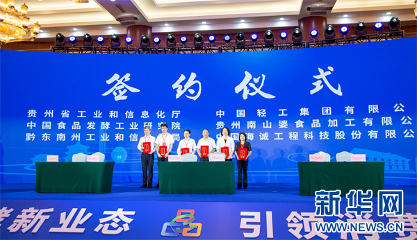 在此次会议上举行了中国轻工集团与贵州省工业和信息化厅、中国食品发酵工业研究院与贵州南山婆集团战略合作签约,黔东南工业和信息化局与中国海诚签订酸汤产业规划合作协议。通过省企合作,实现地方政府和大型国有企业的合作共赢、共同发展。