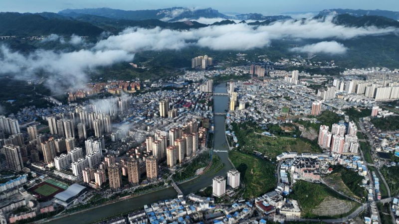 7月26日拍摄的“中国天眼”全景(维护保养期间无人机拍摄)。