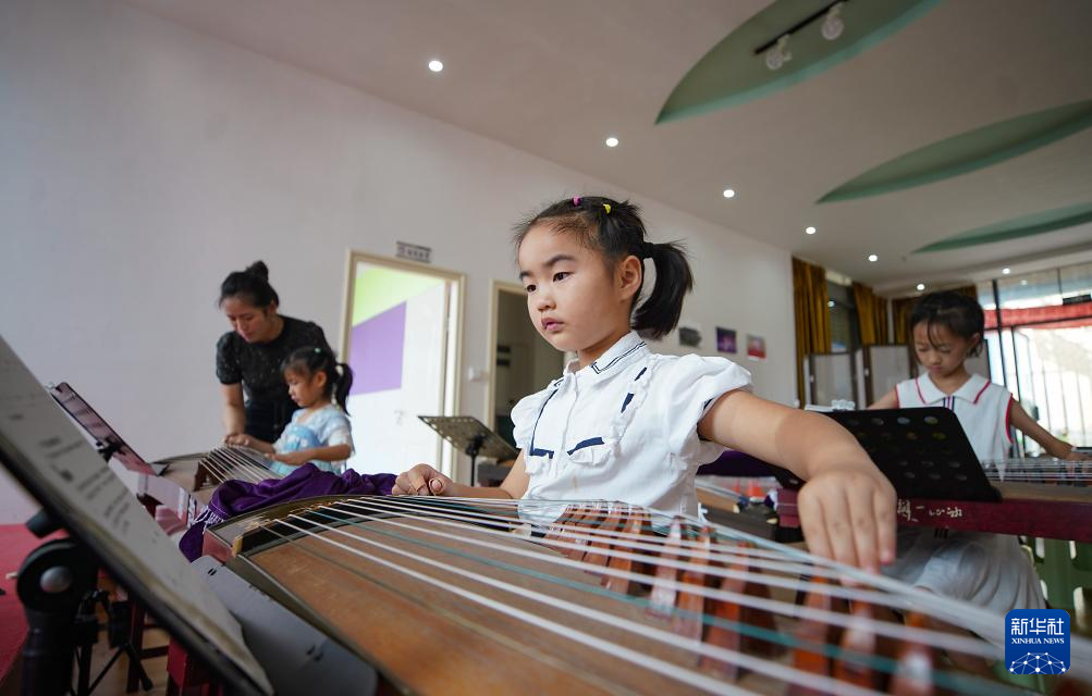 7月30日,孩子们在贵州省黔东南苗族侗族自治州丹寨县一家音乐培训机构学习古筝。新华社发(黄晓海 摄)