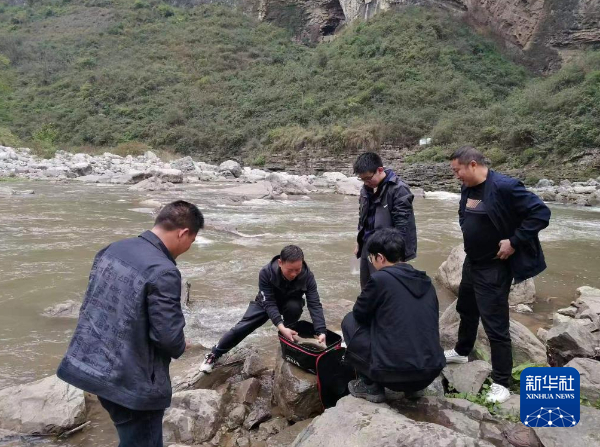 中国科学院水生生物研究所专家在赤水河开展调查。新华社发(刘飞 摄)