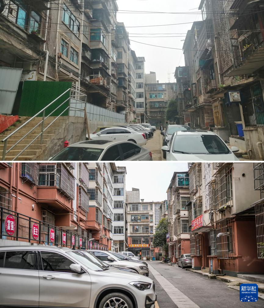 拼版照片:上图为改造前的六盘水市钟山区黄土坡街道文明巷小区(资料照片);下图为改造后的文明巷小区(8月17日新华社记者陶亮摄)。新华社发