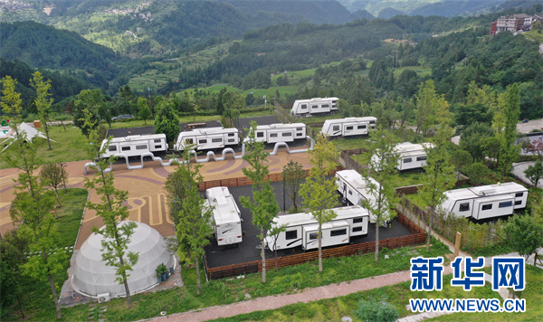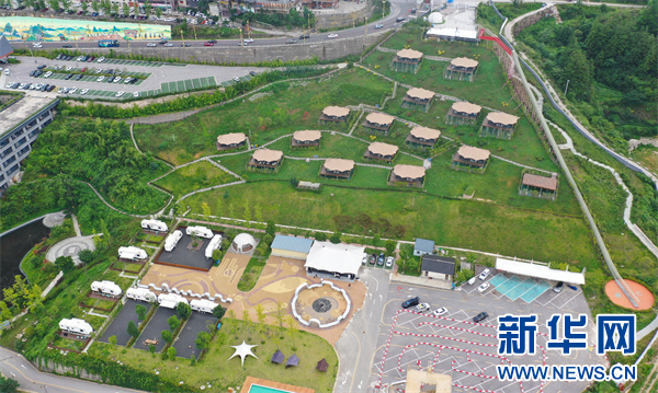 航拍“贵高速·山隐西江”营地。新华网 卢志佳 摄
