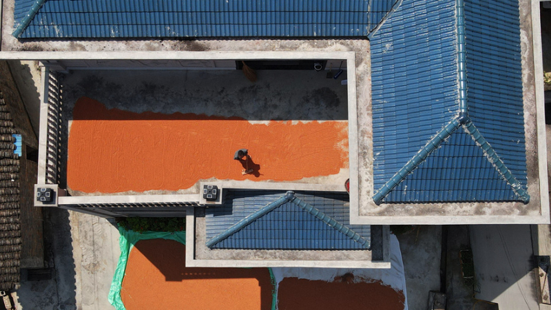 8月23日,贵州省黔东南苗族侗族自治州锦屏县大同乡秀洞村村民在晾晒辣椒。