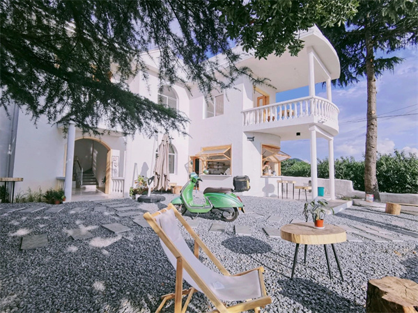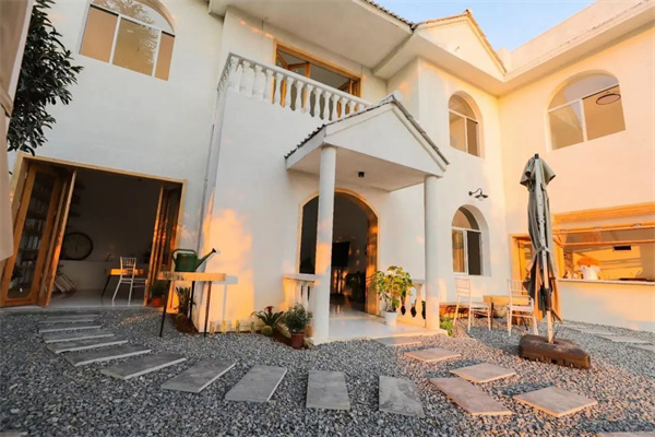 桃林环绕、碧野农家……在南明区永乐乡水塘村江西坡组,穿过两旁村民的住房往巷子往里走,有一家充满格调的“椛间煟檼”文化小院。白色简约的风格,原木色清新的搭配,院落中石板小路上落满细碎的阳光,远远望去,宛如世外桃源。
