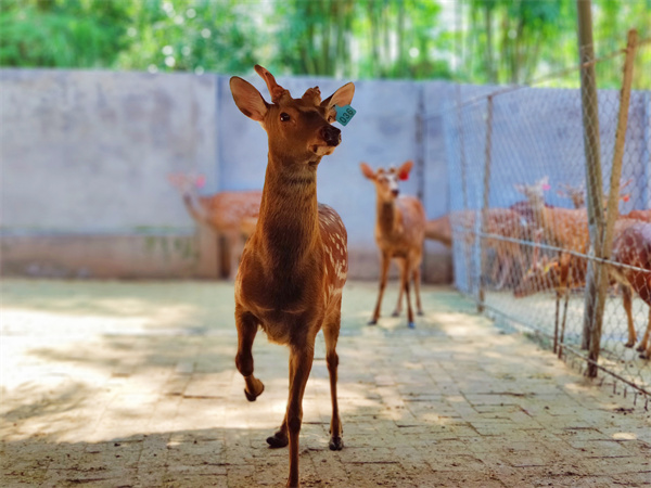秋日里,暑气未消,笔者走进梅花鹿养殖基地,标准的养殖舍映入眼帘。在宽敞的圈舍里,鹿群花色斑斓、俏皮可爱,或慵懒地晒着太阳,或奔跑跳跃。