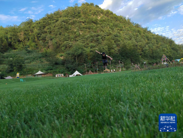 8月22日,游客在贵州省六盘水市爵士大本营露营基地玩耍嬉戏。新华社发(受访者供图)