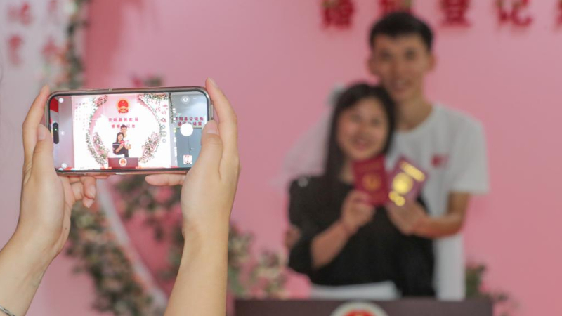 8月29日,贵州文化旅游职业学院学生在交流周活动上进行直播。新华社记者 陶亮 摄