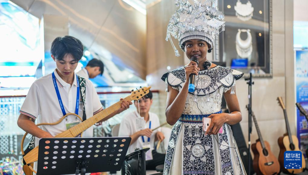 8月29日,国际留学生在交流周活动上演唱歌曲《山水贵客》。新华社记者 陶亮 摄