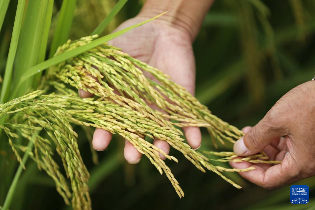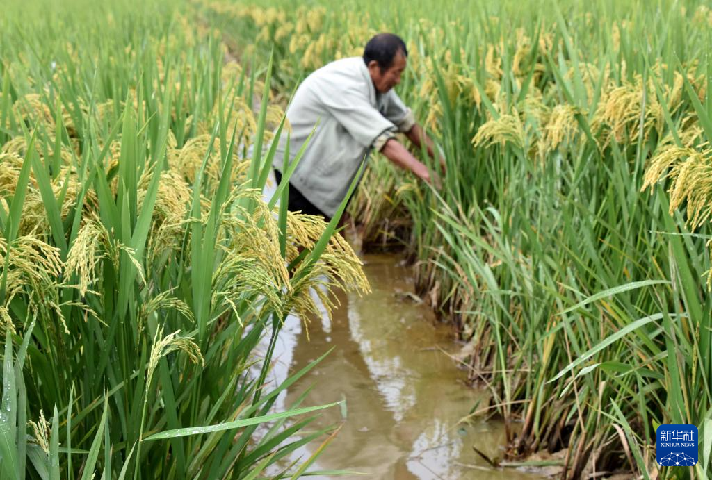 9月4日,村民在贵州省锦屏县敦寨镇亮司村查看稻谷的成熟情况。新华社发(杨晓海 摄)