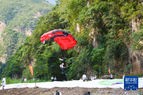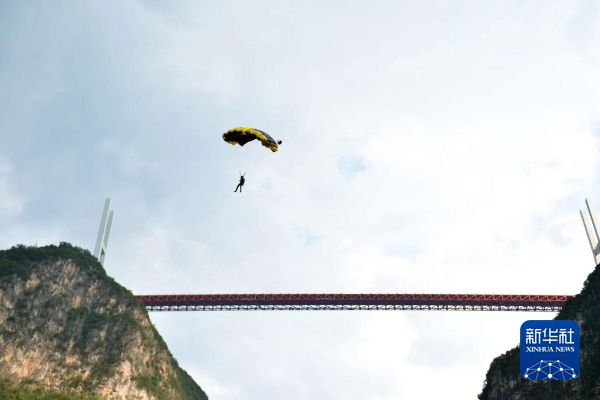 新华社贵阳9月6日电(记者骆飞、吴思)6日上午,极限运动员们相继从北盘江大桥上飞跃而下,拉开了在贵州省六盘水市举行的2023国际高桥极限运动邀请赛世界第一高桥站低空跳伞角逐的序幕。