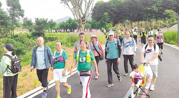 当天8时30分,参与活动的人们从万峰林西南广场出发,途经鱼龙村、乡愁市集、半月弯、双生村展开徒步活动,终点设在将军峰广场。据了解,本次徒步路线以兴义市灰纳河乡村振兴滨河生态产业长廊为主线,抵达终点的参与者都获得了黔小龙公仔钥匙和纪念品一份。