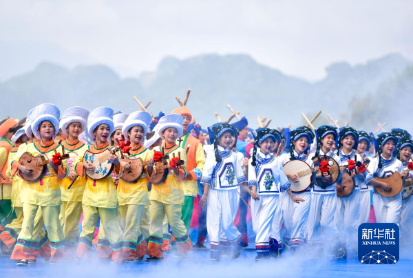 9月16日,演员在2023国际山地旅游暨户外运动大会开幕式上表演。新华社发(刘朝富 摄)