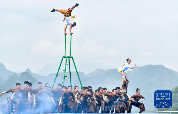 9月16日,演员在2023国际山地旅游暨户外运动大会开幕式上表演。新华社记者 杨文斌 摄