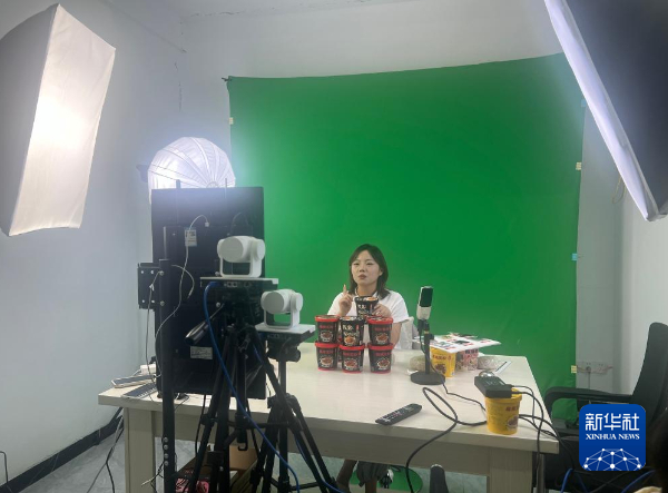 周寨村成立的公司直播间内正在销售酸辣粉。新华社记者 刘智强 摄