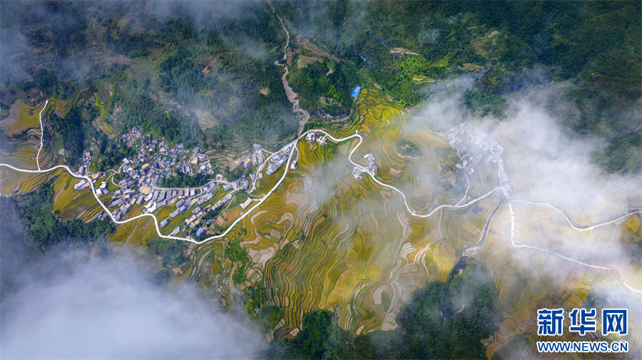 9月17日,航拍的贵州省黔南布依族苗族自治州贵定县腊利梯田。