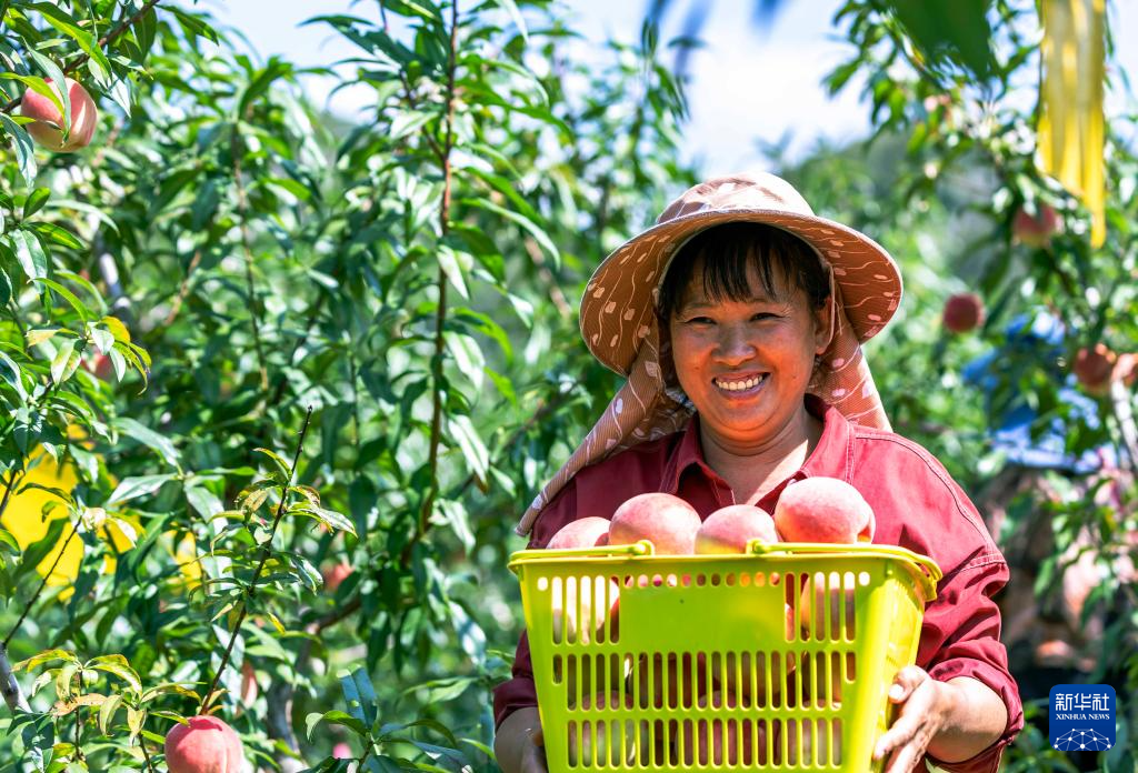 9月17日,村民在贵州省六盘水市钟山区保华镇阿勒河村冬桃种植基地采摘鲜桃。