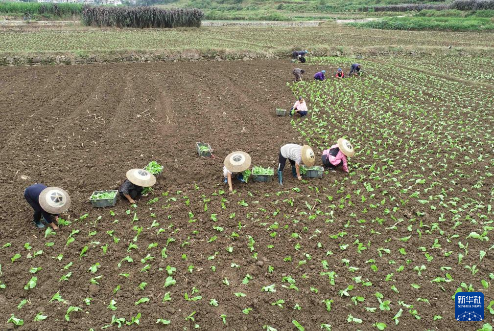最近,在贵州省铜仁市松桃苗族自治县,农民们忙于移栽蔬菜,田野处处是繁忙的景象。今年,该县积极探索水旱轮作接茬产业发展模式,利用水稻收割后的冬闲田种植黑木耳、蔬菜等,有效提升土地利用率,促进农民增收。