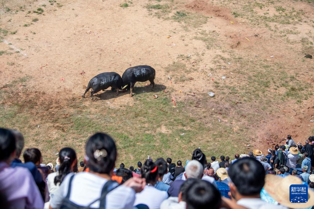 10月4日,人们在贵州省从江县下江镇观看斗牛。
