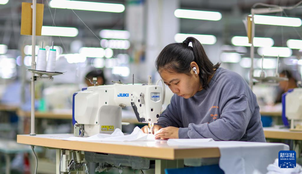 10月7日,贵州省铜仁市玉屏侗族自治县一家服装生产企业的工人在生产服装。新华社发(胡攀学 摄)