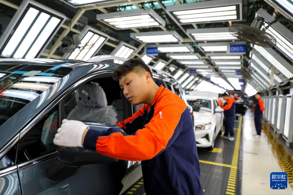 10月7日,工人在贵州省贵阳市观山湖区一家汽车制造企业的车间内工作。新华社发(袁福洪 摄)
