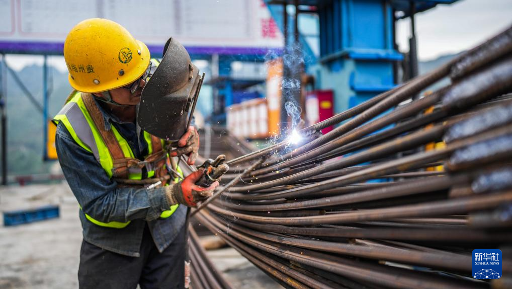 工人在纳晴高速六枝特大桥项目现场进行施工(10月9日摄)。新华社记者 陶亮 摄