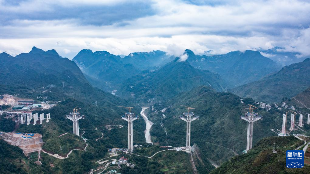 建设中的纳晴高速六枝特大桥(10月9日摄,无人机照片)。新华社记者 陶亮 摄