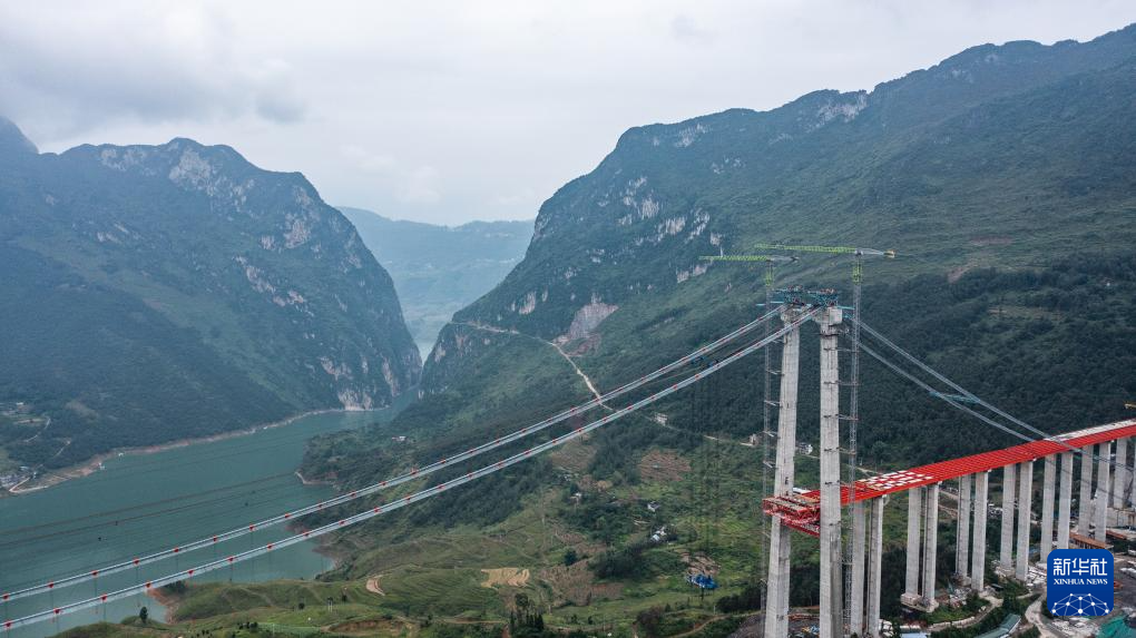 建设中的纳晴高速牂牁江大桥(10月11日摄,无人机照片)。新华社记者 陶亮 摄