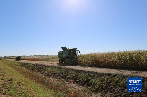 这是9月20日在北大荒农业股份有限公司友谊分公司一玉米种植地块拍摄的秋收现场。新华社记者 石枫 摄