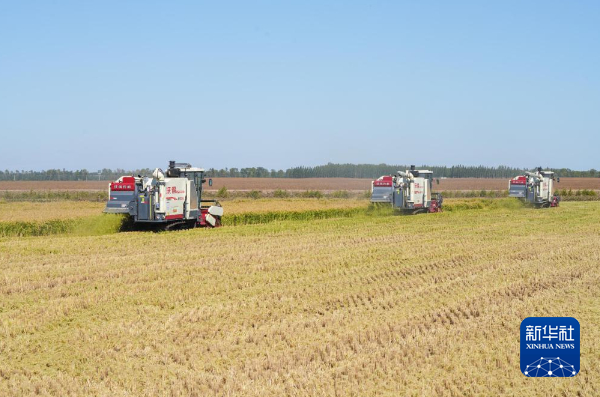 这是9月21日在位于双鸭山市友谊县的北大荒农业股份有限公司友谊分公司一地块拍摄的水稻收获现场。新华社记者 王松 摄