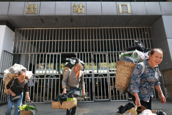 10月17日,村民携带农产品在娄山关站登上5630次列车。