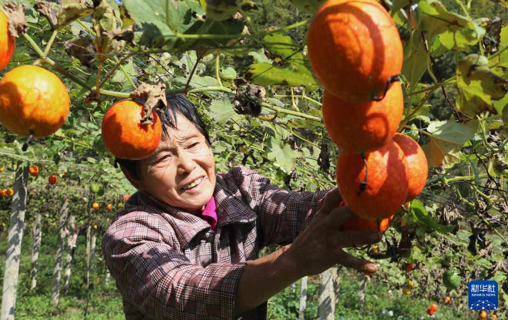 10月21日,村民在贵州省黔东南苗族侗族自治州施秉县城关镇新红村收获吊瓜。