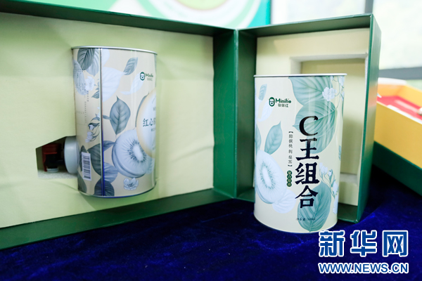 以猕猴桃和刺梨为原料研发制作的饮品。新华网 李涛涛 摄