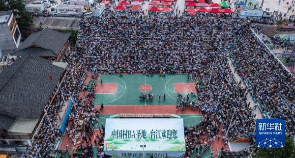 资料图:6月20日,全国和美乡村篮球大赛在贵州省黔东南苗族侗族自治州台江县台盘村正式启动。新华社记者 陶亮 摄