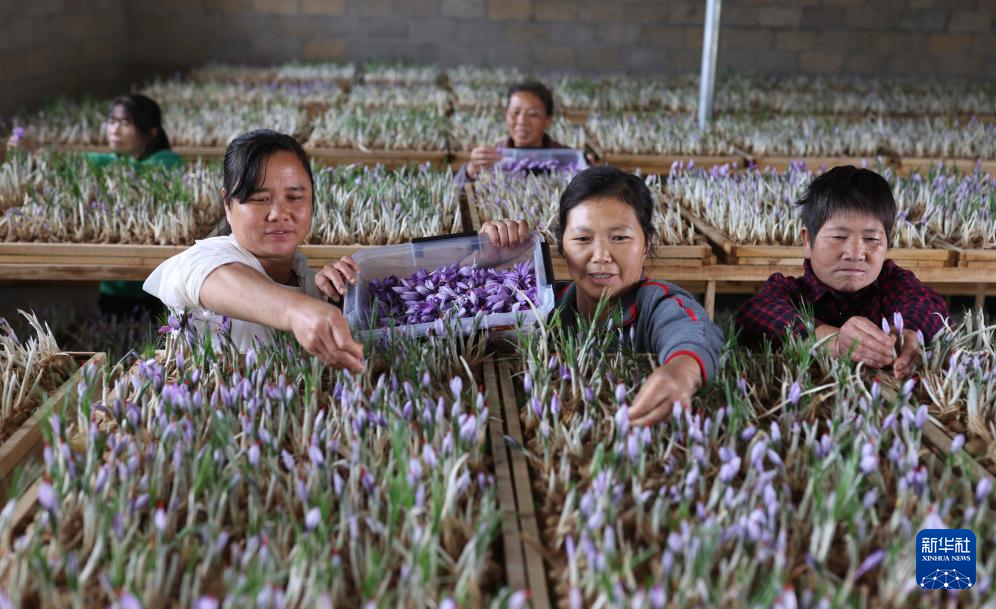 时下,贵州省铜仁市玉屏侗族自治县种植的西红花迎来采收旺季,村民忙着采摘、烘烤、包装,供应市场。近年来,玉屏侗族自治县采取“公司+东西部协作+基地+农民”的模式,大力发展西红花种植,当地农民通过土地流转和基地务工实现持续增收,走出了一条特色产业振兴之路。