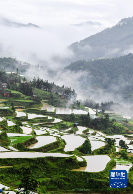 贵州省黎平县尚重镇洋洞村梯田晨景(2021年5月21日摄)。