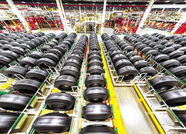 “海外订单供不应求,市场需求持续旺盛。生产线24小时不停,每天生产5500条至6000条轮胎,约15秒下线一条轮胎。”付洪江说。