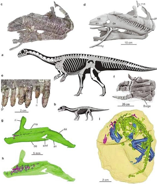 据了解,该恐龙化石群包括至少三个成年个体和五窝恐龙蛋(共约50枚),化石材料显示:部分恐龙蛋处于胚胎发育阶段,极其珍贵,是目前世界上最早的蛋和成体保存在一起的恐龙化石。该地点的蛋化石保存了迄今发现时代最早、最为完整的恐龙蛋壳结构,指示了其为革质蛋壳(介于软壳和硬壳蛋之间)。