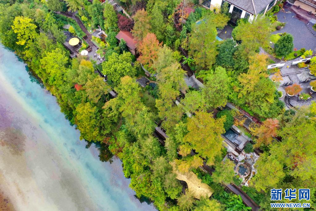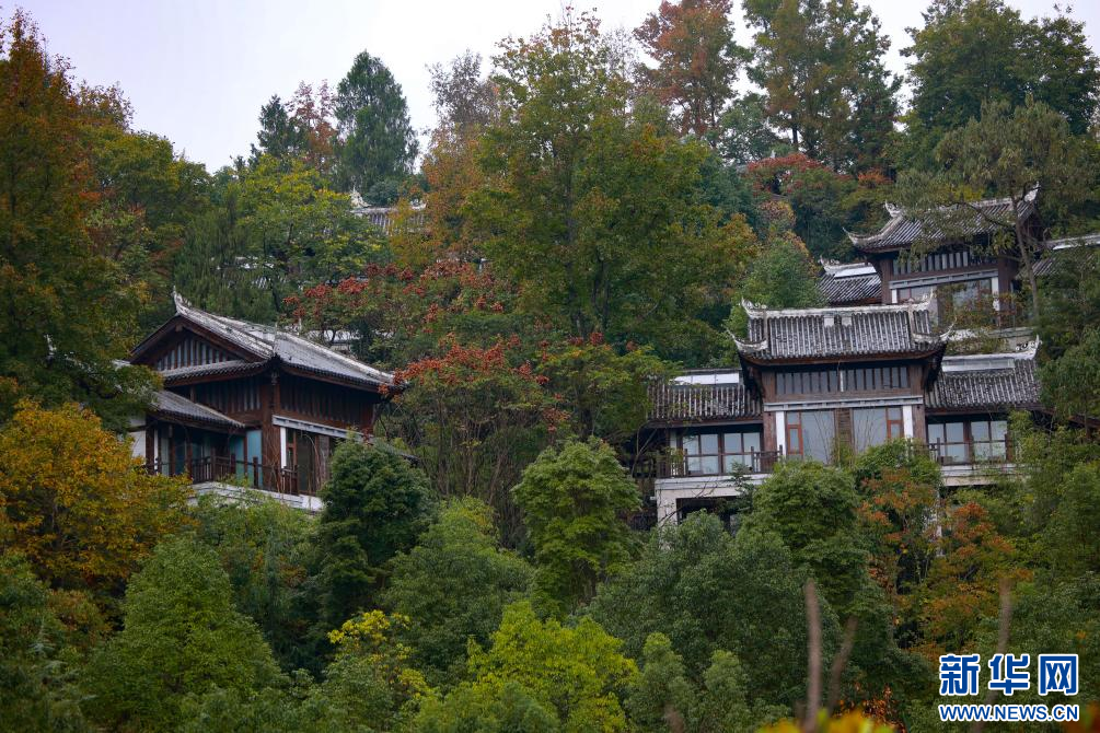 在石阡县佛顶山温泉小镇内,环境优美的温泉设施掩映在树林中(11月15日摄)。新华社记者 刘续摄