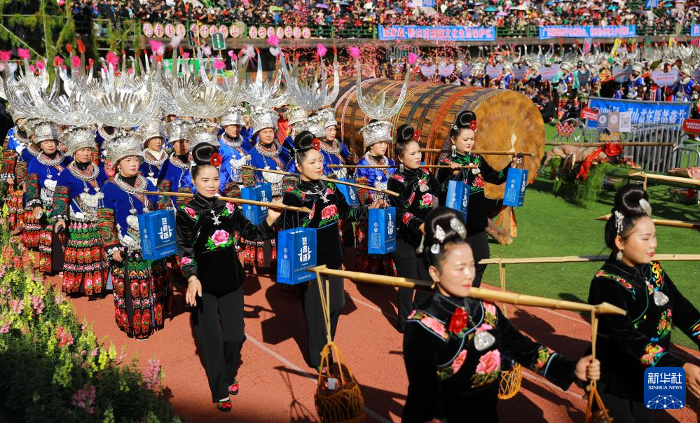 11月16日,在雷山县县城,苗族群众参加苗年和鼓藏节欢庆活动。新华社发(杨承鸿 摄)