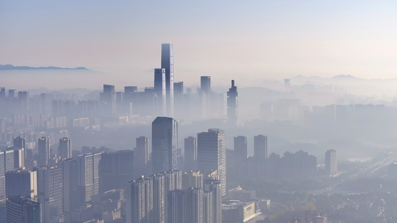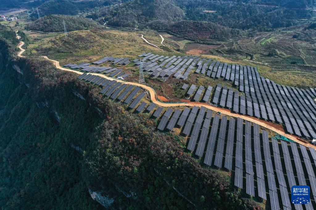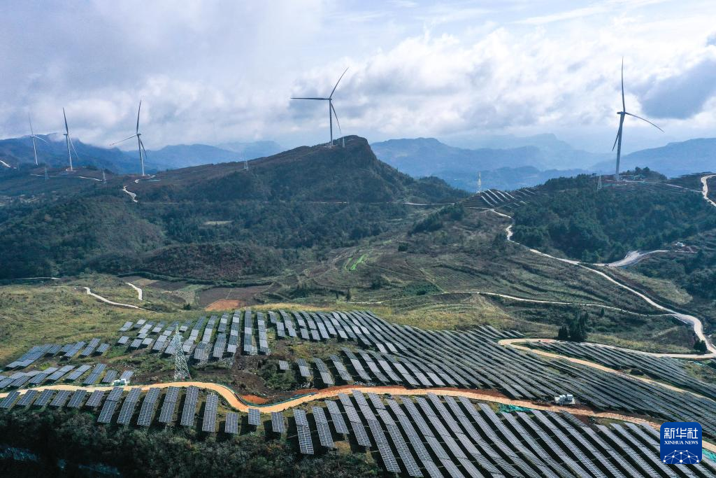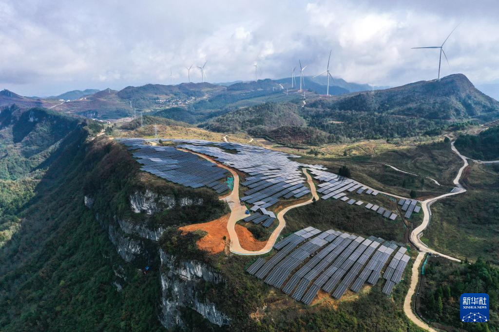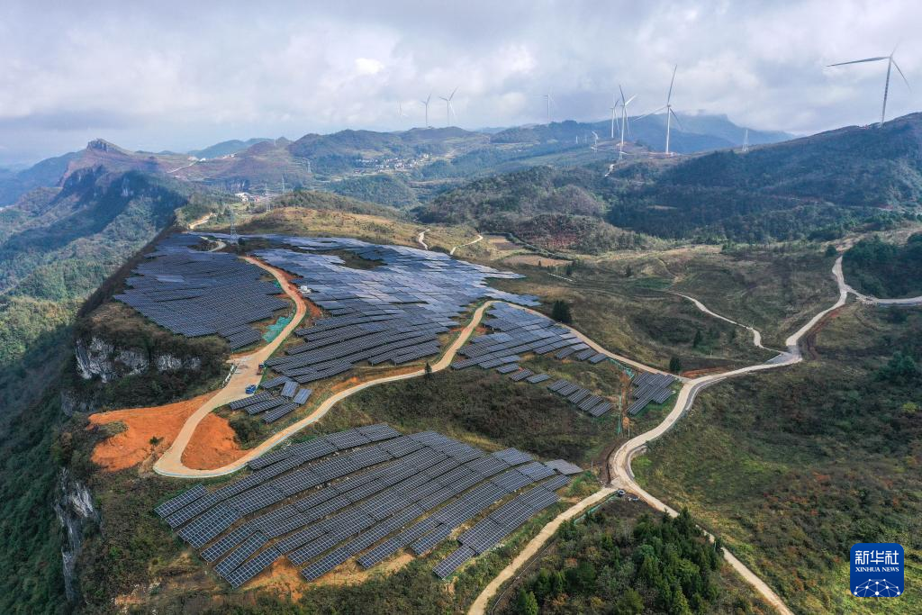这是11月16日拍摄的贵州省石阡县顶董坡风电光伏项目(无人机照片)。