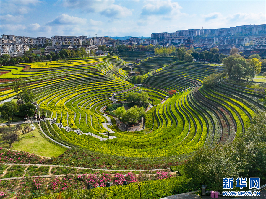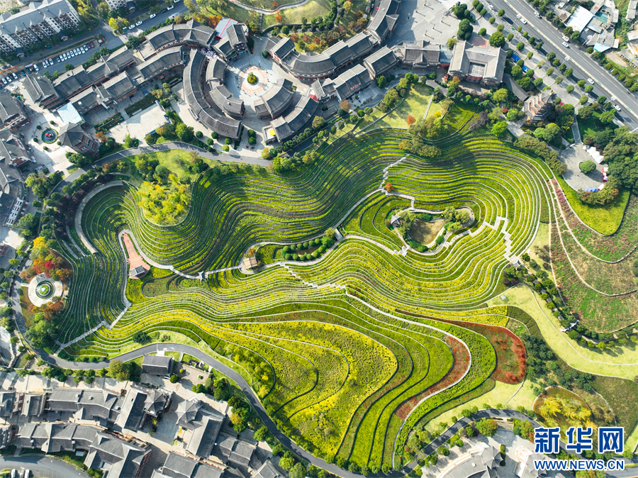 大方县奢香古镇城中梯田(11月16日摄,无人机照片)。新华网发(赵焦玉驰 摄)