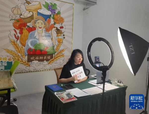 在金寨县电商服务中心,村民正在进行直播训练。新华社记者水金辰 摄