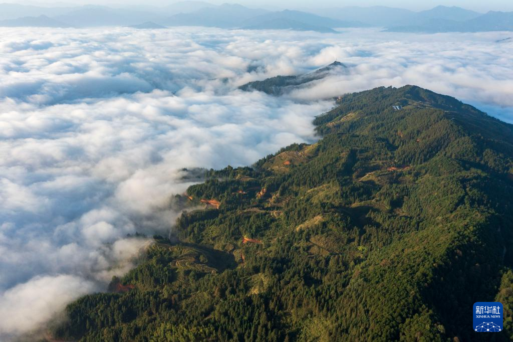 11月17日拍摄的贵州省从江县高增乡新生村云海景观(无人机照片)。