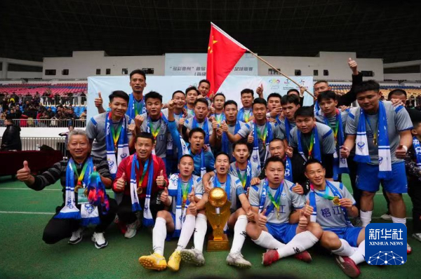 新华社贵阳11月18日电(记者罗羽)18日,“多彩贵州”首届(县域)男子足球联赛第三阶段决赛在贵州省黔南布依族苗族自治州三都水族自治县上演。来自“村超”发源地的球队、贵州黔东南州榕江县代表队以3:1战胜遵义市红花岗区代表队,夺得总冠军。