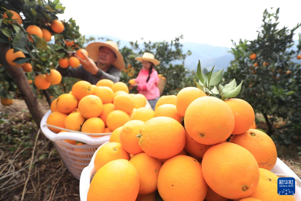 连日来,贵州省黔东南苗族侗族自治州榕江县2.6万亩脐橙进入采摘季,员工忙着采摘、打包、搬运脐橙,果园一派忙碌景象。