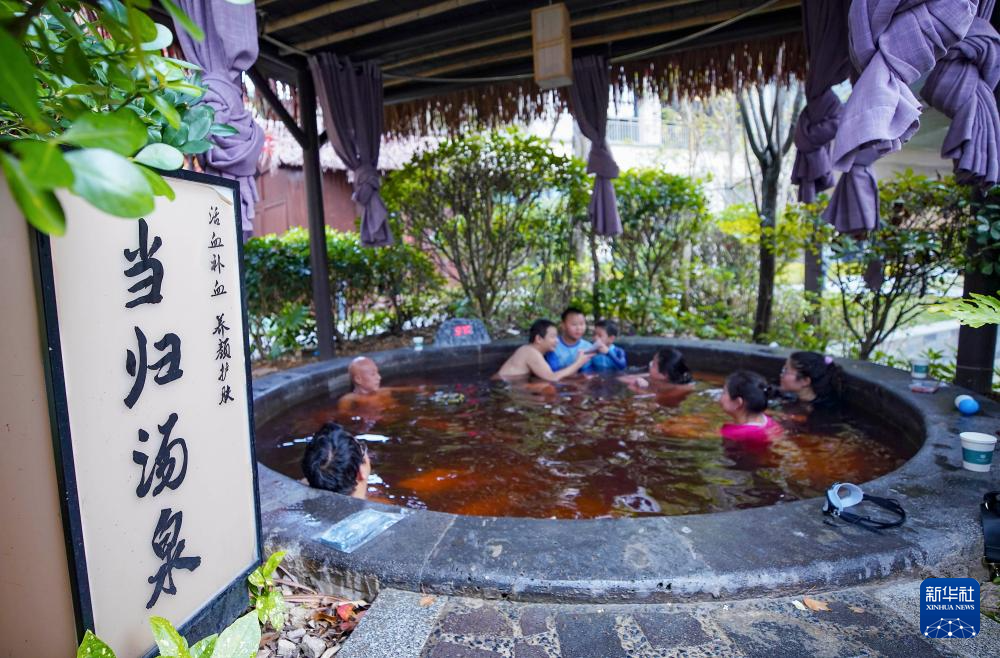 11月25日,游客在贵州省丹寨县万达小镇泡温泉。