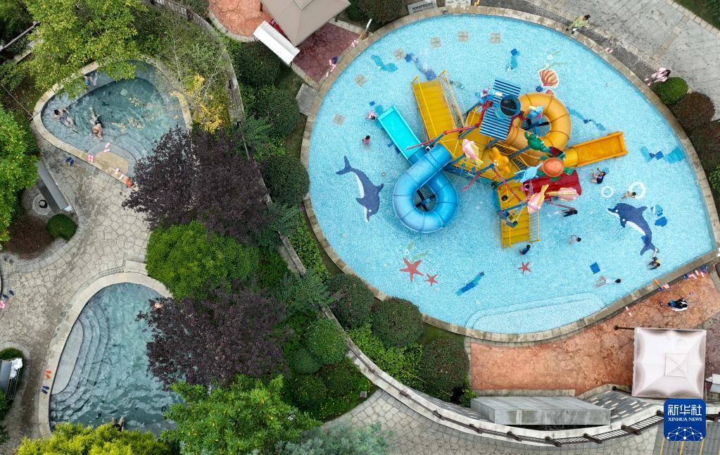 11月26日,游客在贵州息烽温泉泡温泉(无人机照片)。新华社发(袁福洪摄)