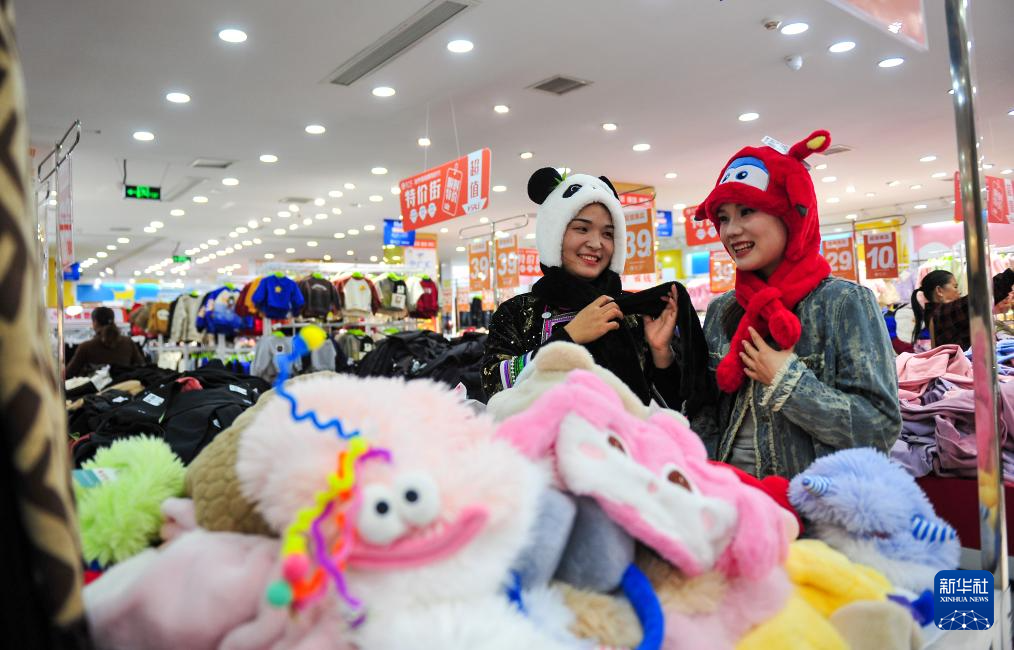 11月26日,市民在贵州省黔东南苗族侗族自治州从江县一家商店选购帽子。新华社发(卢忠南摄)