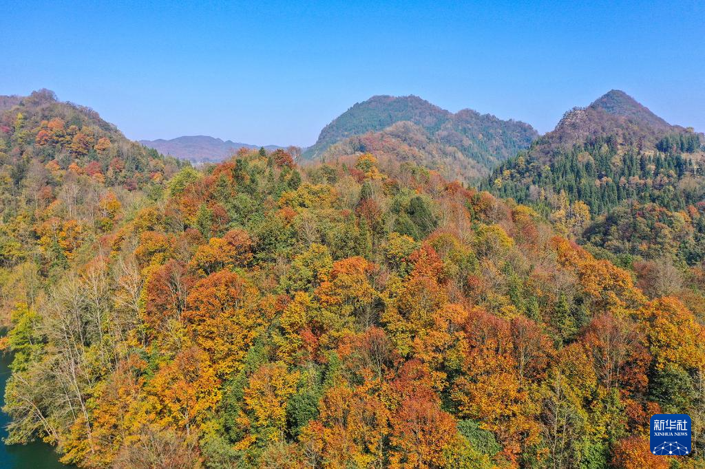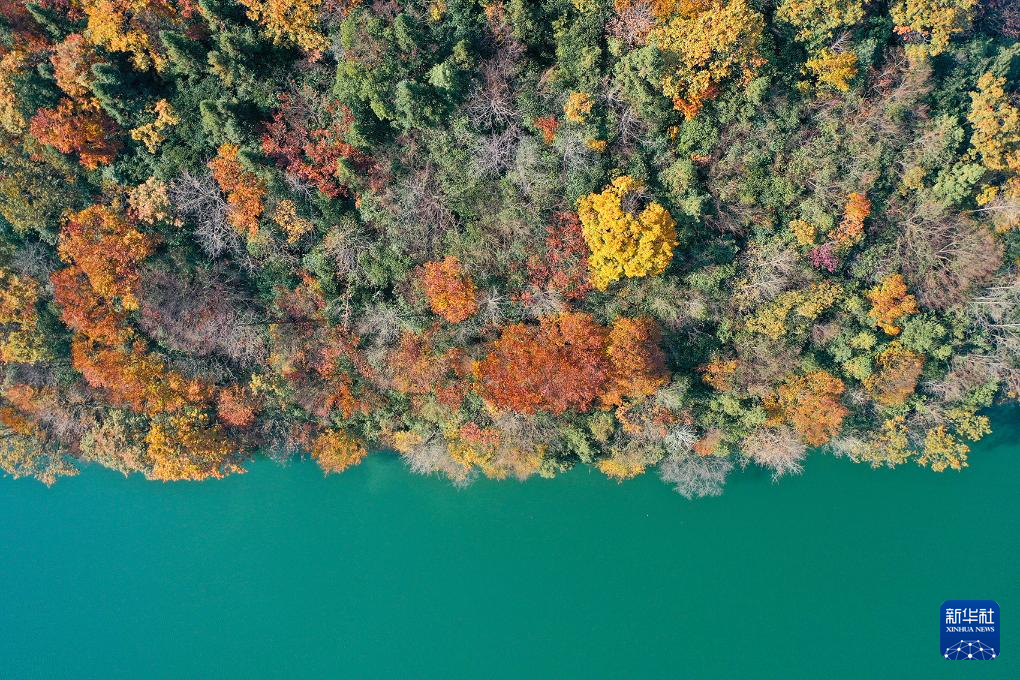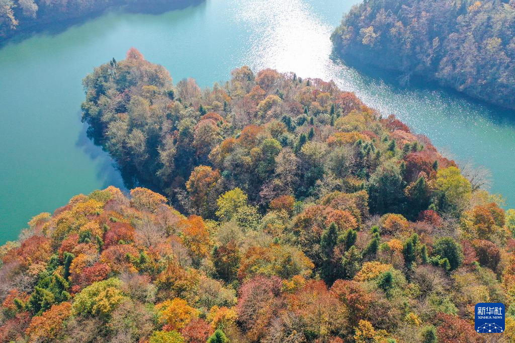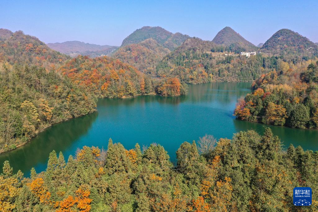 11月27日,在贵州省毕节市百里杜鹃管理区鹏程街道移山湖拍摄的景色(无人机照片)。新华社发(李华 摄)