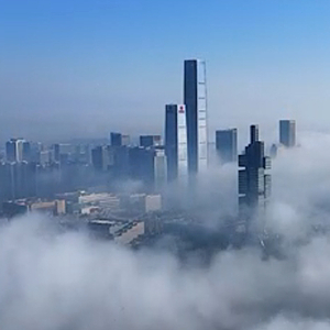 近日,在贵州省贵阳市,清晨的薄雾笼罩大地,城市在朝阳的光照与朦胧的雾气中若隐若现,如梦似幻,宛若仙境。